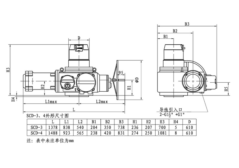 SCD-04~4內(nèi)裝閥桿螺母結(jié)構(gòu)與法蘭各部尺寸