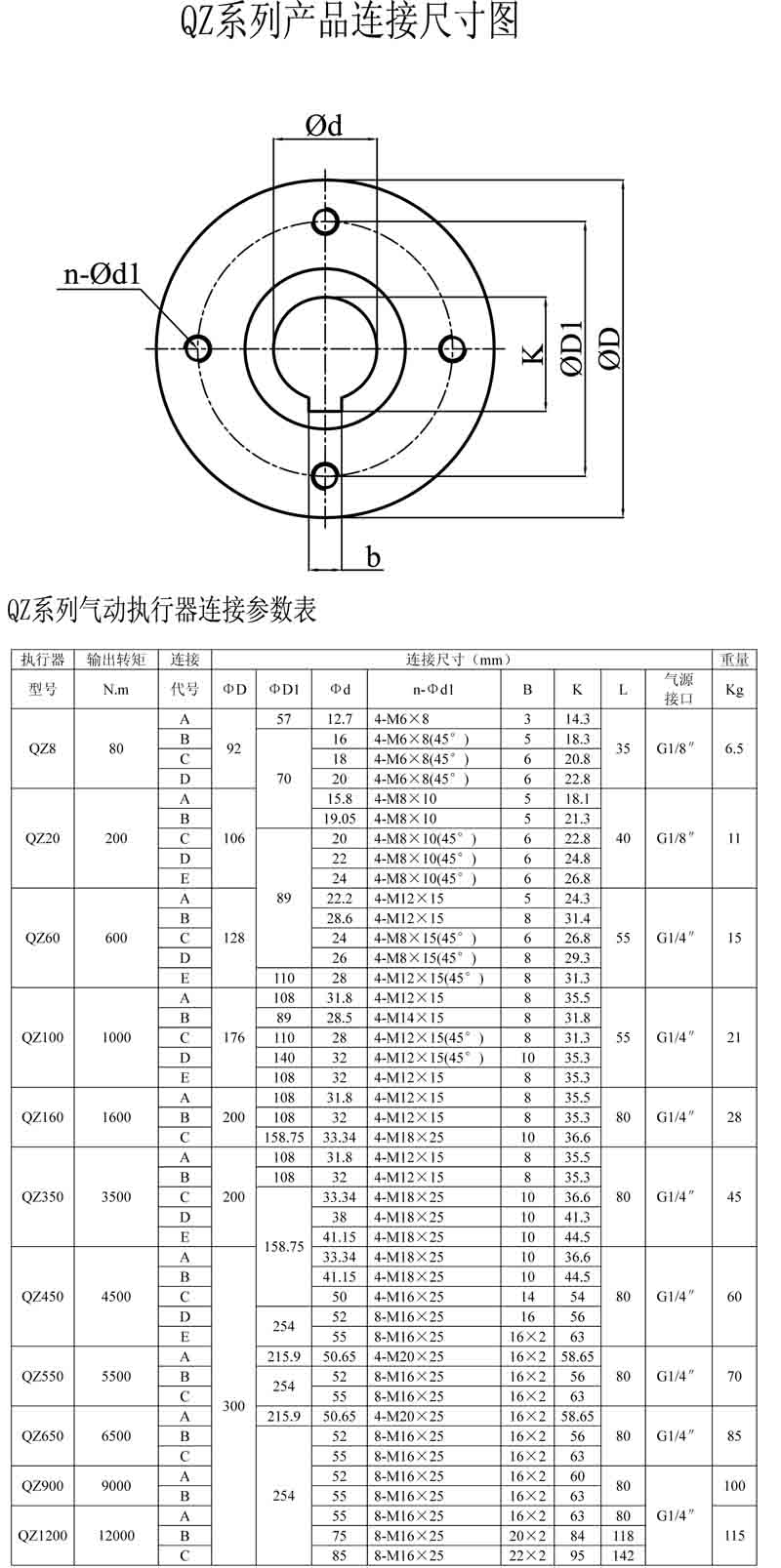QZ產(chǎn)品連接尺寸圖