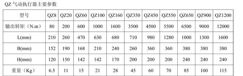 QZ系列閥門氣動裝置為輸出轉(zhuǎn)角90°的氣動執(zhí)行器機構,可與球閥、蝶閥組成氣動閥門,也適用于90°回轉(zhuǎn)的其它機械裝置。本產(chǎn)品若配用電磁閥和定位器可以完成開關兩位置動作和連續(xù)動作,實現(xiàn)自動調(diào)節(jié)控制。可廣泛用于石油、化工、食品、醫(yī)藥、輕紡、造紙、發(fā)電、船舶、冶金、煤氣和供排水等系統(tǒng)自動化裝置中,既能實現(xiàn)現(xiàn)場或遠距離操作,也能實現(xiàn)單獨或集中控制。
