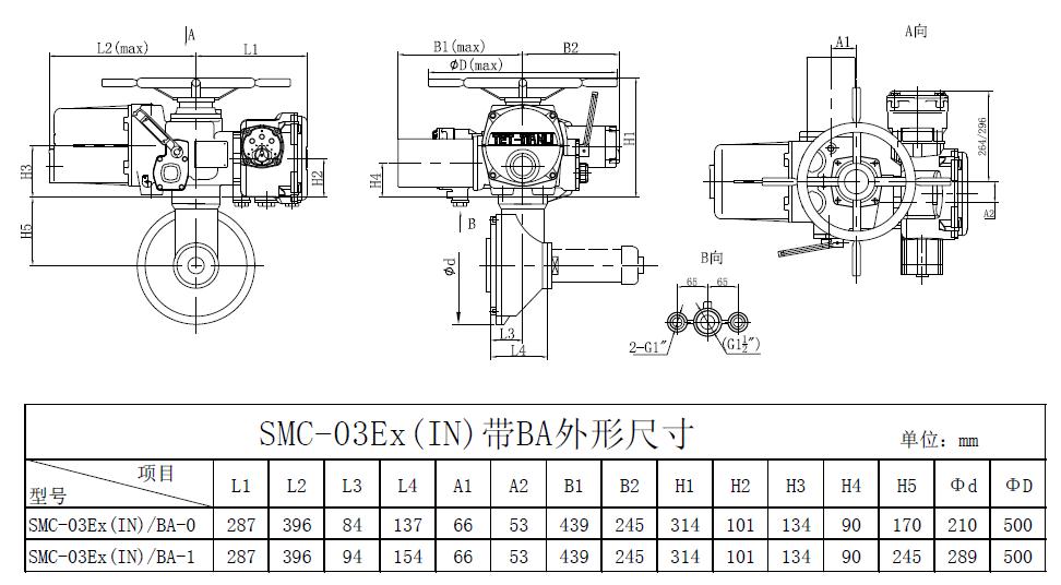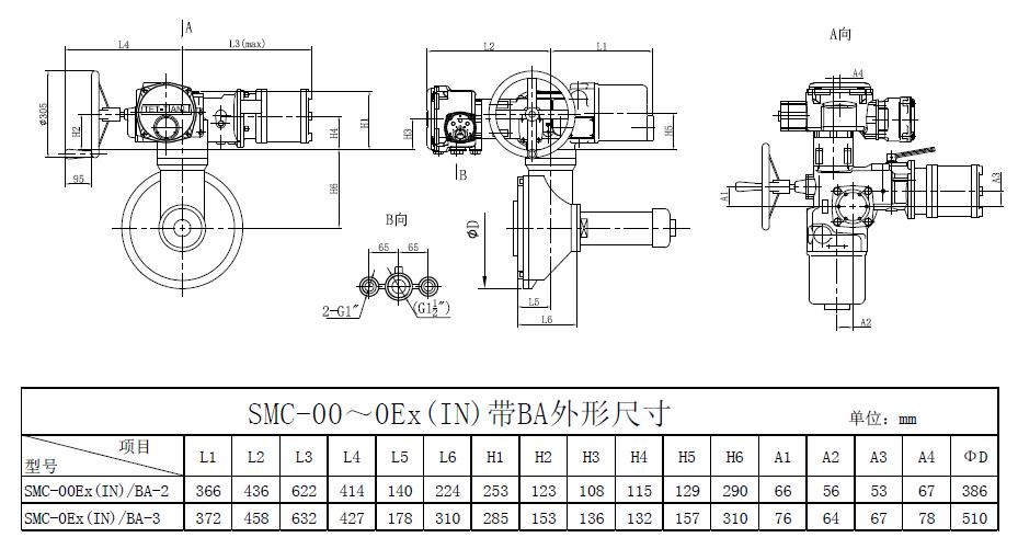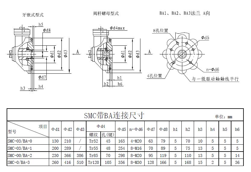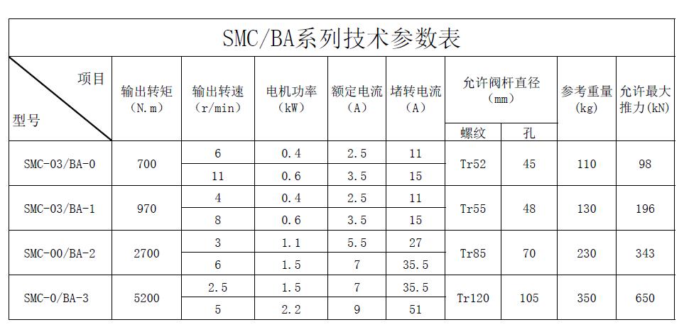 SMC/BA系列電動裝置是SMC系列中小轉矩多回轉電動裝置與BA圓錐齒輪減速器的一種組合型式,它適合閘閥、截止閥等多回轉閥門的驅動控制。SMC/BA電動裝置具有以下特點:以較小轉矩規格的SMC電動裝置與BA減速器組合可獲得更大的輸出轉矩。在輸出轉速允許的條件下,選用該產品能夠提高所選電動裝置規格的通用性,便于產品的使用、維護。