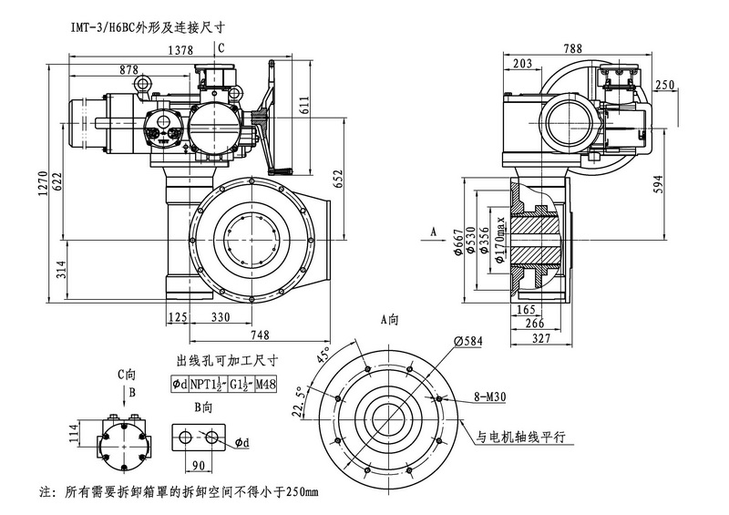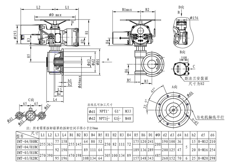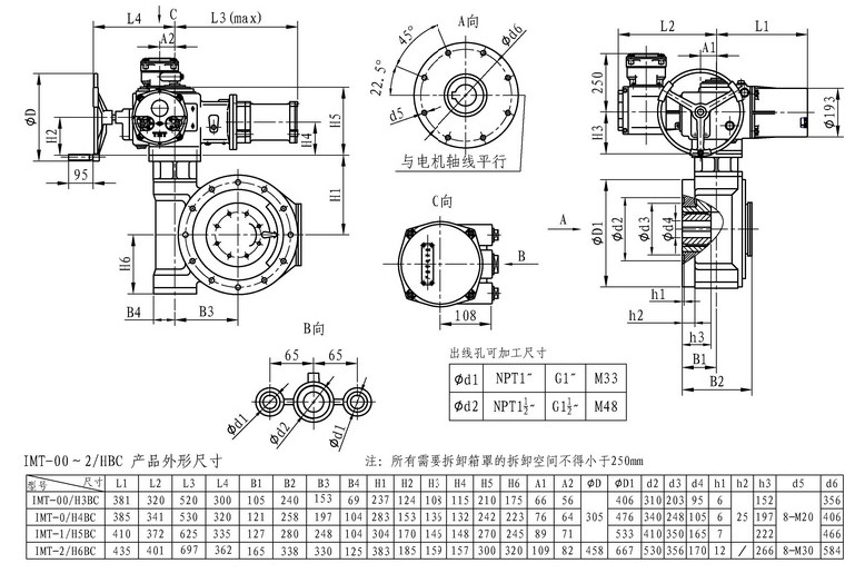 IMT/HBC系列智能型電動裝置是IMT系列多回轉智能型電動裝置與HBC蝸輪減速器的組合型式,它適合球閥、蝶閥等部分回轉閥門的驅動控制。 IMT/HBC智能型電動裝置具有以下特點:結構設計堅固可靠,產品規格齊全,驅動轉矩范圍大且動力輸出穩定, 具有良好的自鎖性能。 HBC輸出軸結構獨特,裝有與閥桿連接的漸開線花鍵接頭,產品的安裝調試方便。