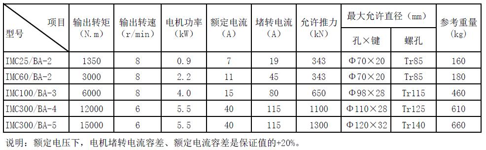 IMC/BA標(biāo)準(zhǔn)技術(shù)參數(shù)表
