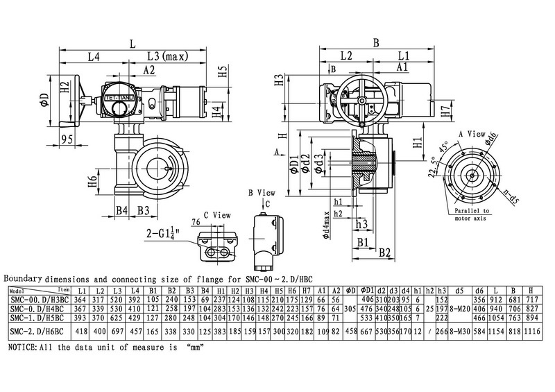 SMC/HBC series ,the combination of SMC series muilt-turn electric actuators and HBC worm speed reducer , was used to control ball valve ,butterfly valve and other part-turn valve actuators. This series actuators have features as firm structure, multiple standard, large torque rang, stable output and self-locking ability. In order to set up with the valve stem, HBC has a involute stem nut.. It is easy to test and adjust.