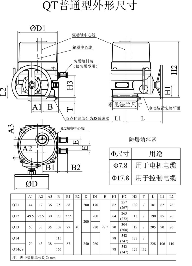 QT普通型產品外形尺寸