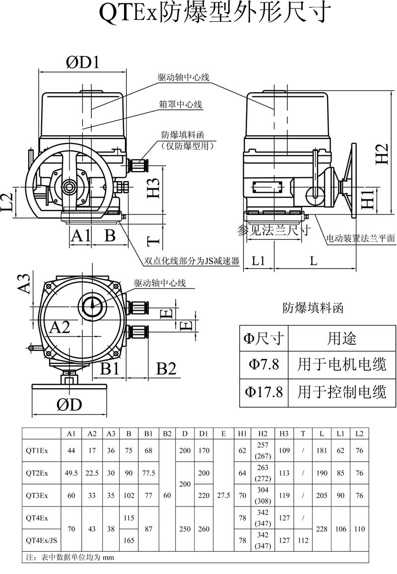 QT1~QT4型部分回轉(zhuǎn)閥門(mén)電動(dòng)裝置是我公司最新研制的換代型產(chǎn)品。適用于控制蝶閥、球閥、旋塞閥等做90°回轉(zhuǎn)的閥門(mén)。該產(chǎn)品替代同規(guī)格的QB系列產(chǎn)品,體積小、重量輕、具有高效率、高可靠性、高防護(hù)性能、低噪音等特點(diǎn)。可現(xiàn)場(chǎng)操作,也可遠(yuǎn)距離控制。可廣泛用于石油、化工、發(fā)電廠、水處理、造紙等各行業(yè)。該產(chǎn)品的防護(hù)等級(jí)為IP67,隔爆型產(chǎn)品(型號(hào)中有Ex)的隔爆等級(jí)為dⅡBT4。