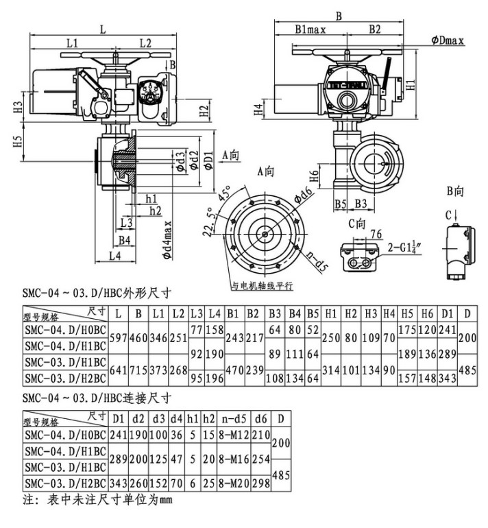 SMC/HBC系列電動裝置是SMC系列多回轉(zhuǎn)電動裝置與HBC蝸輪減速器的組合型式,它適合球閥、蝶閥等部分回轉(zhuǎn)閥門的驅(qū)動控制。SMC/HBC電動裝置具有以下特點:結(jié)構(gòu)設(shè)計堅固可靠,產(chǎn)品規(guī)格齊全,驅(qū)動轉(zhuǎn)矩范圍大且動力輸出穩(wěn)定, 具有良好的自鎖性能。 HBC輸出軸結(jié)構(gòu)獨特,裝有與閥桿連接的漸開線花鍵接頭,產(chǎn)品的安裝調(diào)試方便。